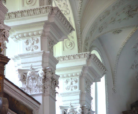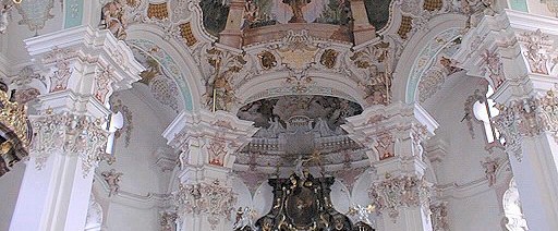 Stukkaturen von Joseph Schmuzer, Wessobrunn (1727-1729), in der Klosterkirche Irrsee bei Kaufbeuren, erbaut 1699 bis 1729. |